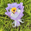 Os buquês possuem telas de seda super macias, e as pelúcias tem enchimento em algodão pp. As flores são artificiais.