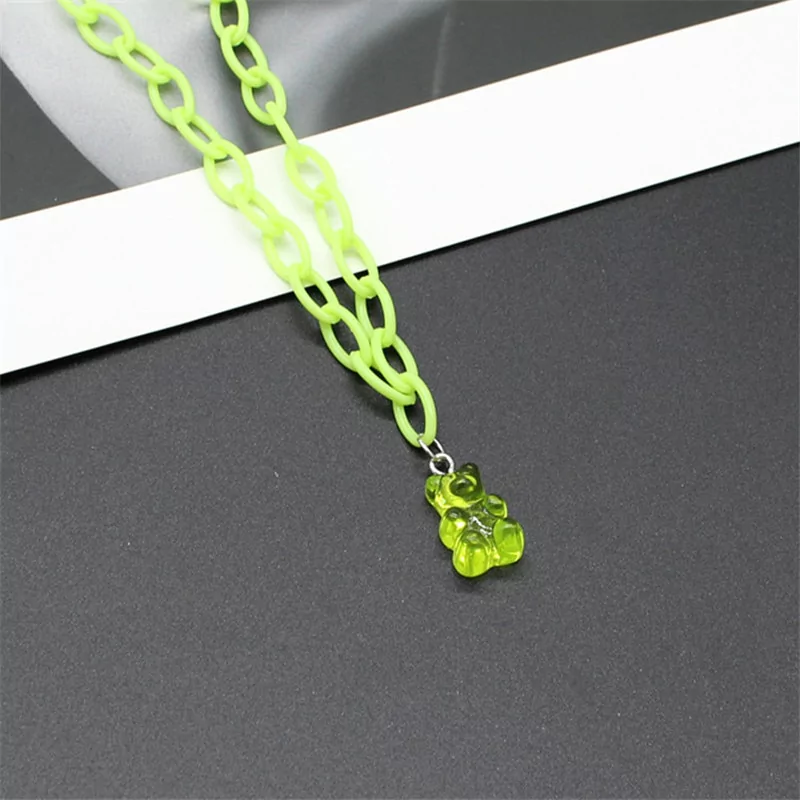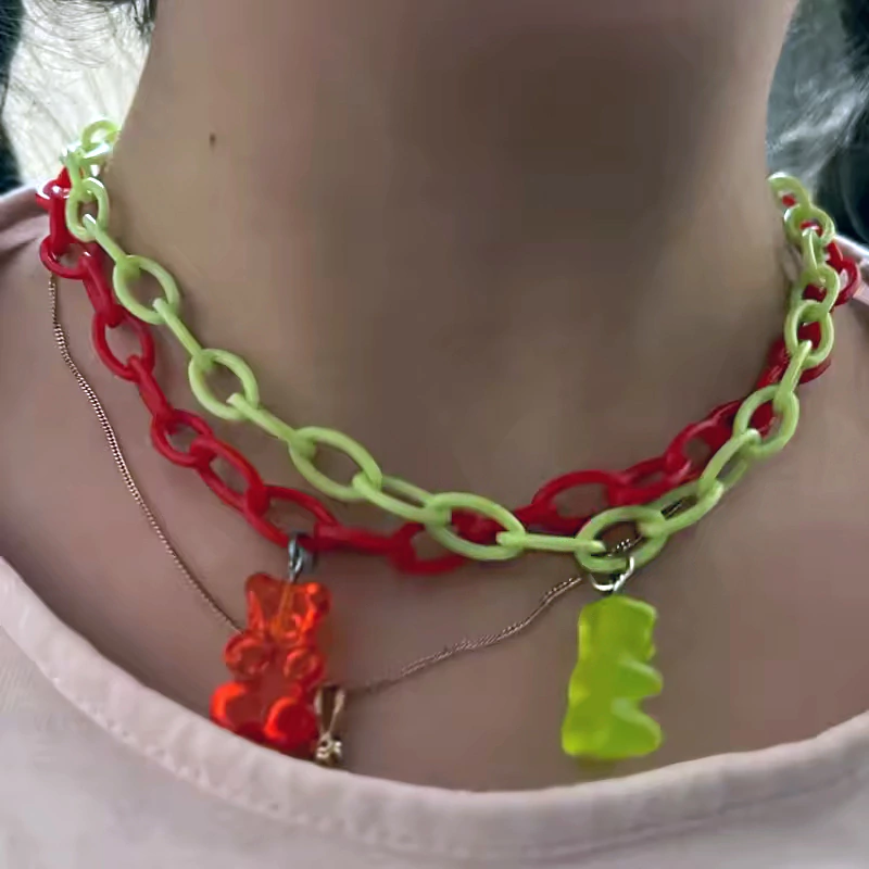Adoce seu visual com o Colar Gummy Bear / Ursinhos Gominha! 🐻🌈 Este colar super divertido traz um pingente fofo de ursinho no formato da bala mais amada do mundo, disponível em várias cores para combinar com seu estilo. Perfeito para quem adora looks descontraídos, cheios de personalidade e um toque de doçura.