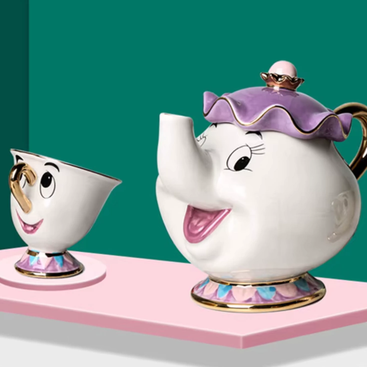 Mrs. Potts é uma simpática senhora, que no momento de feitiço sobre a Fera foi transformada em um bule de chá. Ela gosta muito de dar conselhos maternais e amorosos para Bela e para Chip, seu pequeno filhinho, que foi transformado numa xícara no momento do feitiço. Chip é um garotinho adorável, que no momento de feitiço sobre a Fera foi transformada em uma xícara.