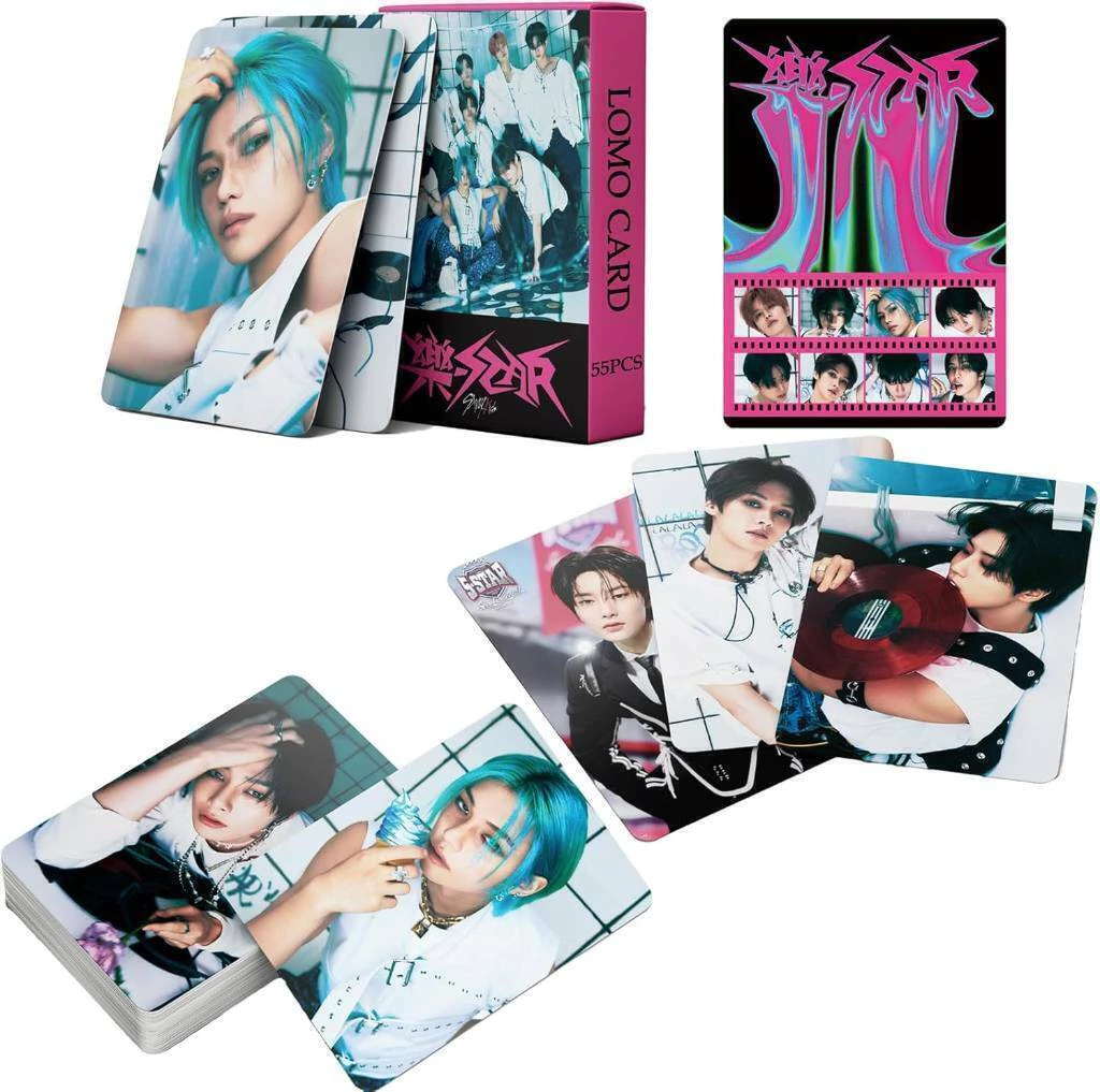 Colecione momentos incríveis da Stray Kids com os kits de 55 photocards, perfeito para fãs (STAYs) que amam decorar álbuns, agendas, celulares ou presentear outros colecionadores!