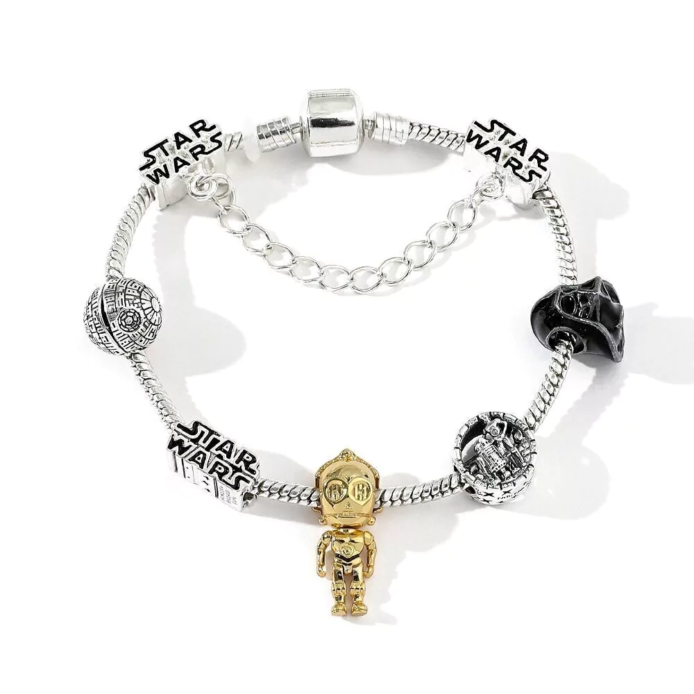 7 berloques temáticos (incluindo C-3PO, Darth Vader e Estrela da Morte)