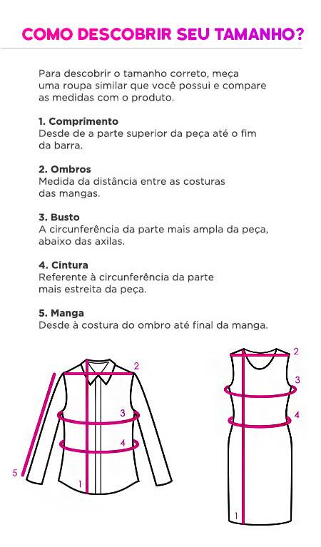 Recomendamos medir o corpo e comparar com a tabela antes de escolher o tamanho.
